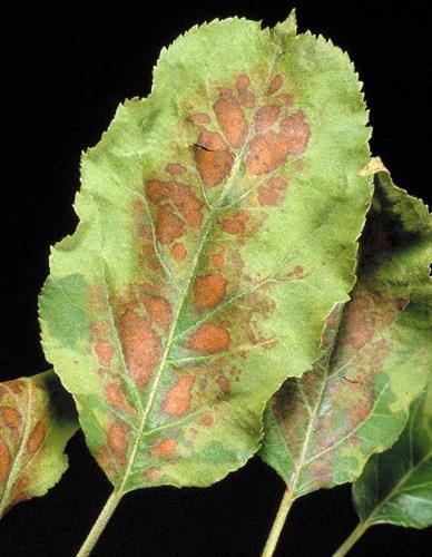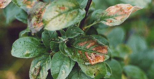 Apple and other fruits somtimes right away evolve necrosis without preceding chlorosis.