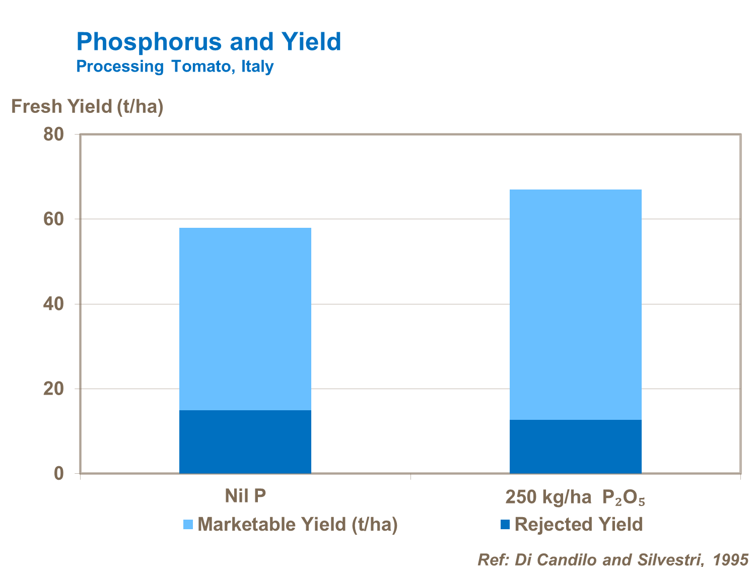 Phosphorus is important for early growth and root development of the establishing seedling. It is also essential at the stage of fruit set. In soils with low available phosphorus, fertilizer phosphate increases tomato fruit yield and ripening, reducing the number of rejected fruit at harvest.